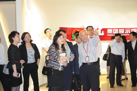 集團董事長楊振華和公司領導提前來到接待大廳迎候各位嘉賓的到來。大家首先聽取了蘇化科技園的組建、運營和發展情況的介紹,隨后參觀了蘇化集團展示館,饒有興致的聽取了蘇化發展歷程講解,圖文并茂的展覽和視頻資料等現代化的表現手法,使大家對蘇化60年來的發展有了更深的了解,增強了對企業的信貸支持信心。